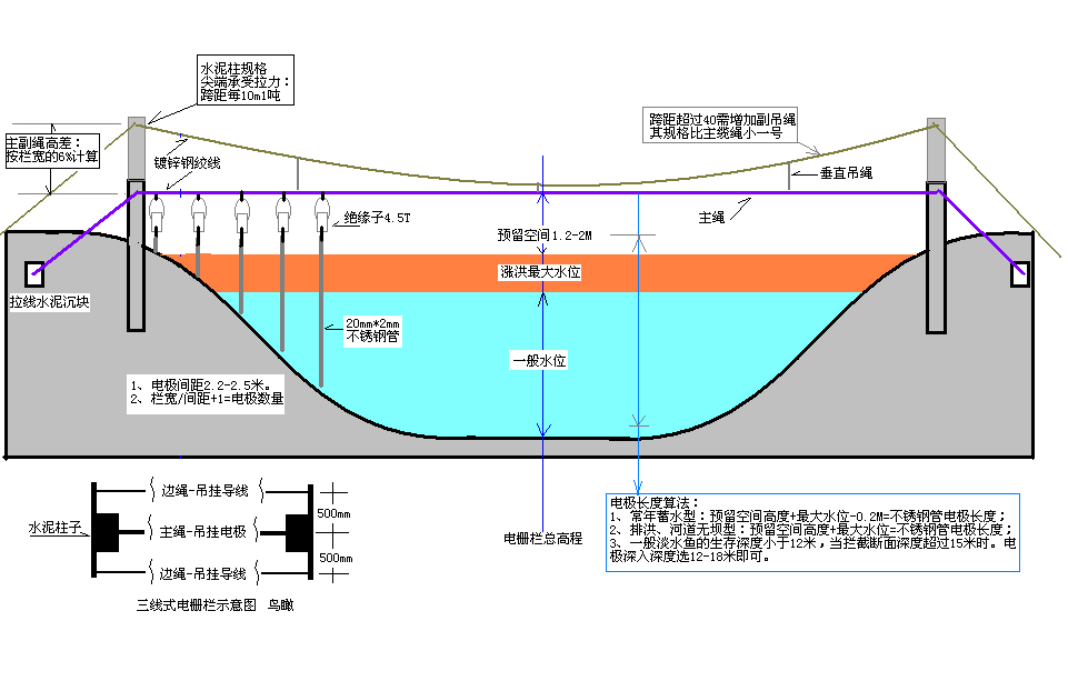 用途: 庫,塘,河流泄洪防魚逃。 優(yōu)點:與網(wǎng)攔相比 1、不影響正常泄洪 2、適合任何地形 3、攔魚效率高 4、不存在掛、老化問題經(jīng)久耐用 5、不需要人員管理,一次安裝永不維護 技術(shù)指標: 1、脈沖頻率:5---20Hz可調(diào) 2、負載能力:最小0.5歐姆 3、輸出電壓:2200Vp—p 4、消耗功率:2kw 5、電源電壓;220V/AC50Hz 6、使用環(huán)境溫度-10---50℃ 7、環(huán)境濕度:小于80% 8、整機電流:3—10A 9、單機攔魚最大水面幅寬85米 10、攔魚最大水深30米 11、工作形式:連續(xù) 12、整機質(zhì)量:64 KG